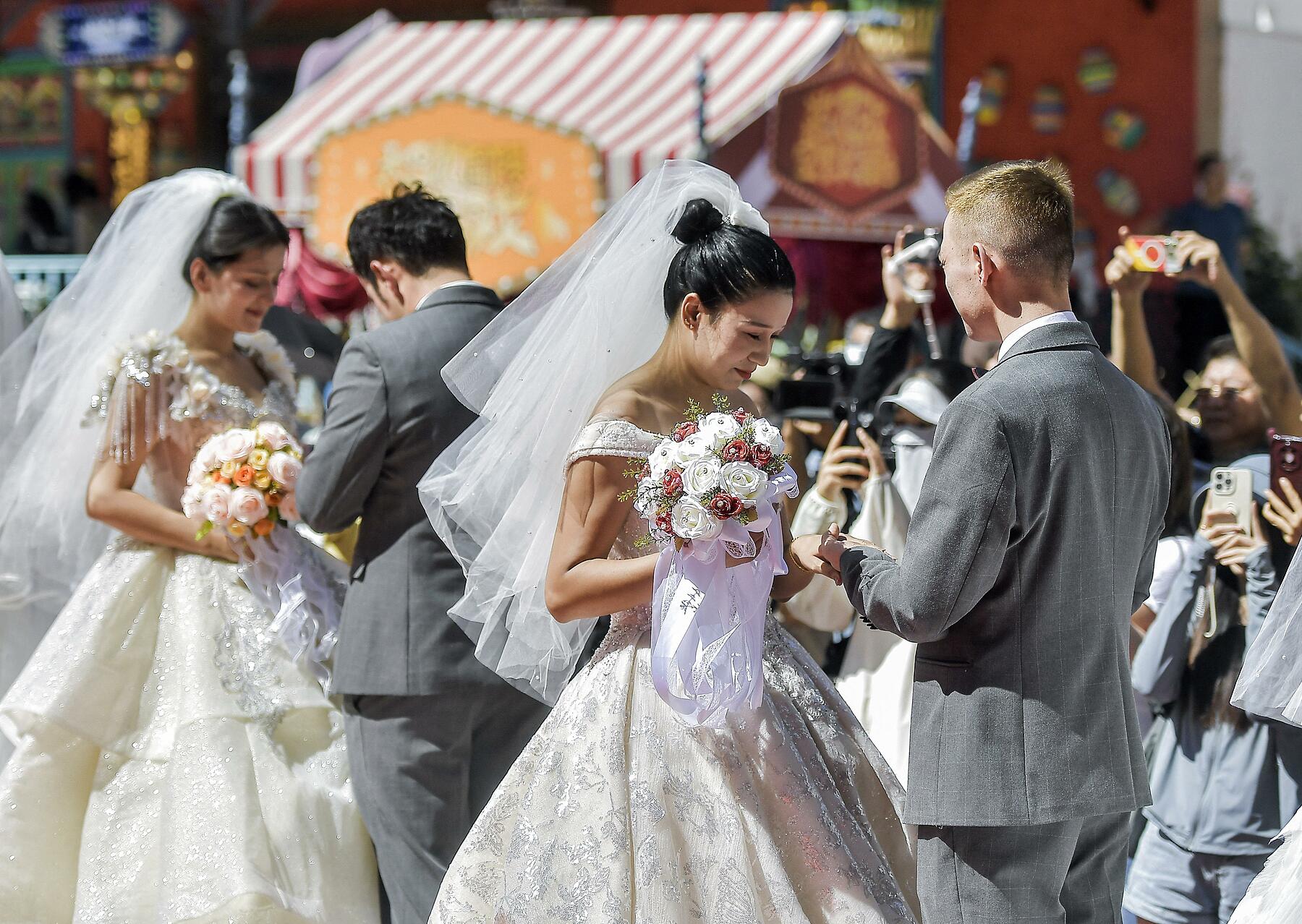 Một đám cưới tập thể ở thành phố Urumqi,khu tự trị Tân Cương,Trung Quốc ngày 10/8. Ảnh: AFP