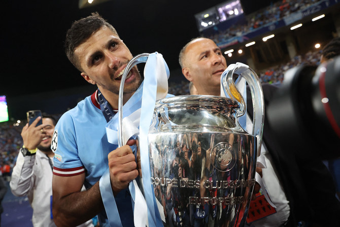 Rodri ăn mừng chức vô địch Champions League 2022-2023.
