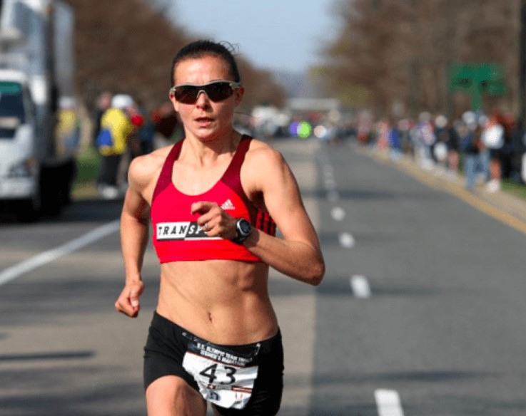 Lewy-Boulet khi thi đấu Olympic Marathon Trials tại Boston năm 2008.
