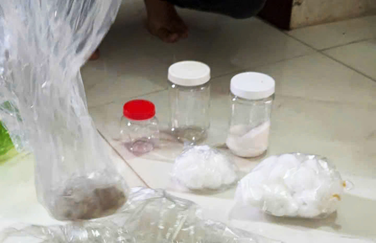 Cảnh sát khám xét,thu giữ hàng trăm kg xyanua. Video: Công an cung cấp