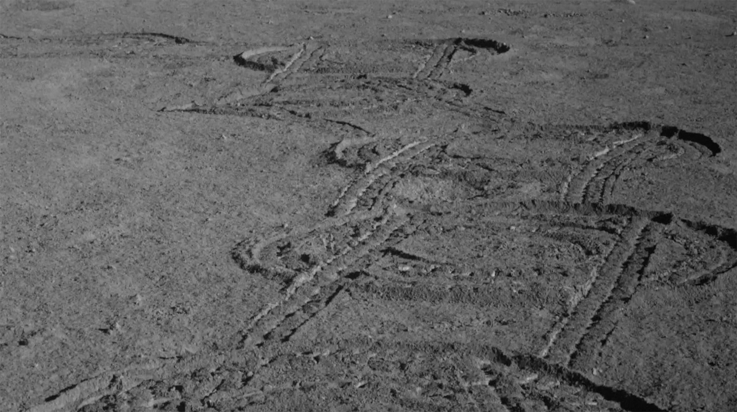 Dấu vết di chuyển trên Mặt Trăng do robot Thỏ Ngọc-2 chụp. Ảnh: CCTV Plus