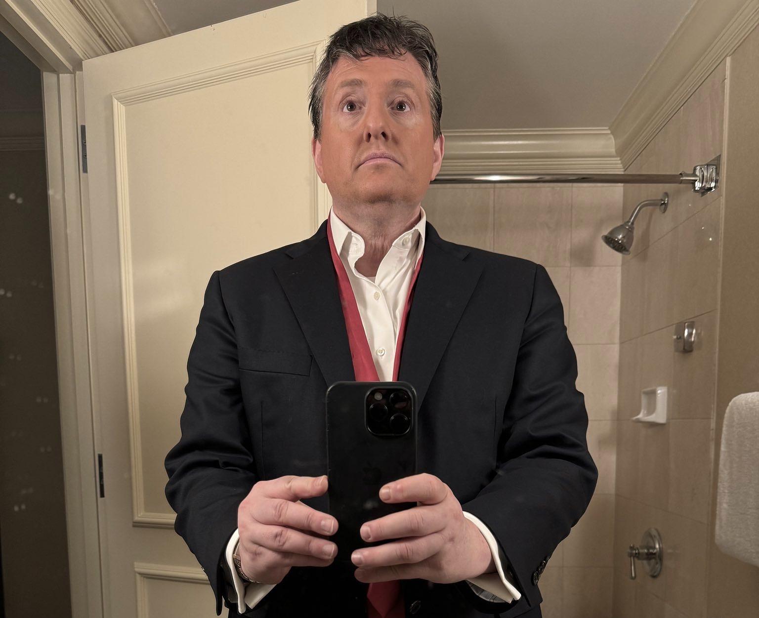 Reines cho biết ông đã mất rất nhiều thời gian để xóa lớp hóa trang thành ông Trump. Reines ngày 11/9 đăng trên X ảnh ông đứng trong một phòng tắm nhỏ,gương mặt còn phấn đánh khối,trên cổ là cà vạt màu đỏ không thắt. "Việc cần làm: chăm sóc khuôn mặt,cắt tóc,thanh tẩy tinh thần",Reines viết.