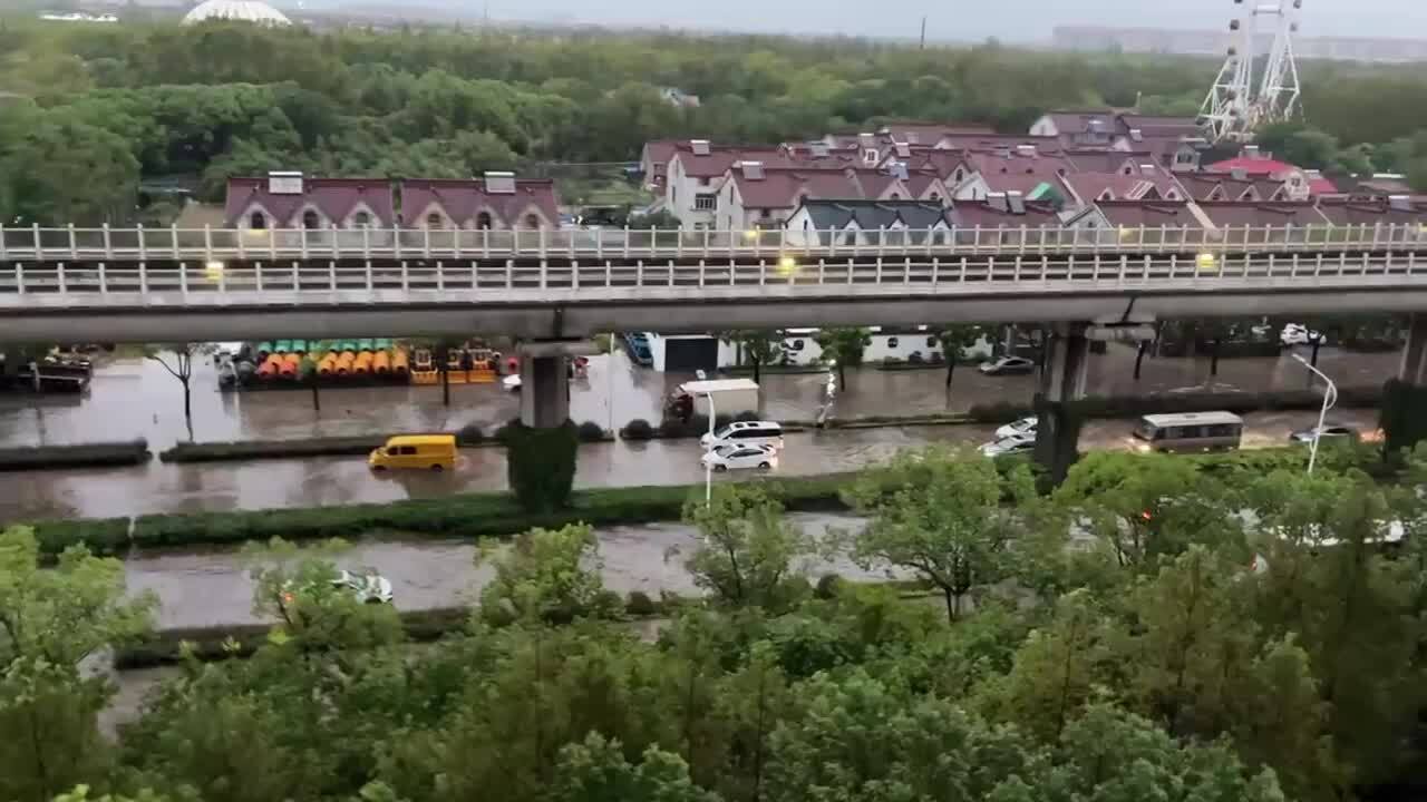 Tuyến đường bị ngập sáng 20/9 sau khi bão Pulasan đổ bộ thành phố Thượng Hải,Trung Quốc. Video: Shanghai Daily