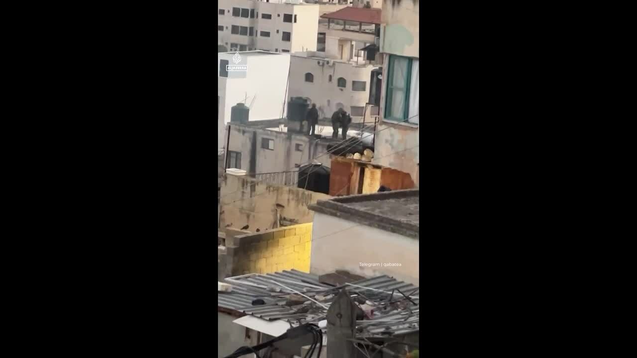 Binh sĩ Israel đẩy các thi thể từ nóc nhà xuống đất tại thị trấn Qabatiya ở Bờ Tây hôm 19/9. Video: Telegram/Qabatea