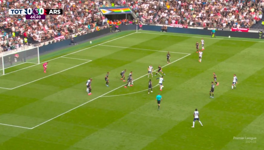 Arsenal đã thi đấu quyết liệt hơn trong hiệp hai tại sân Tottenham Hotspur,khi Arteta yêu cầu các học trò đá trực diện và sử dụng nhiều đường chuyền dài hơn. Tình huống đá phạt góc dẫn đến bàn quyết định của trung vệ Gabriel Magalhaes xuất phát từ pha phản công ba đấu ba,điều không xảy ra trong 45 phút đầu.
