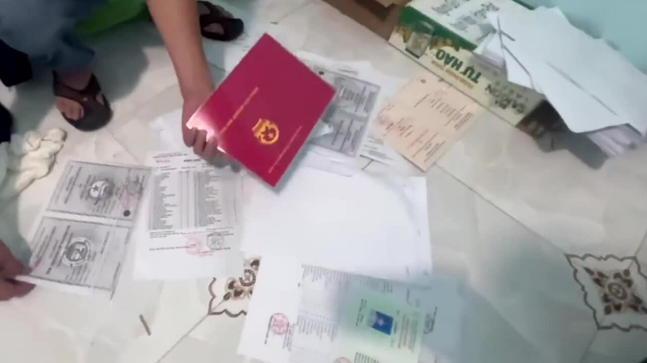 Cảnh sát ập vào bắt quả tang nhiều người đang giao giấy tờ giả cho khách. Video: Công an cung cấp