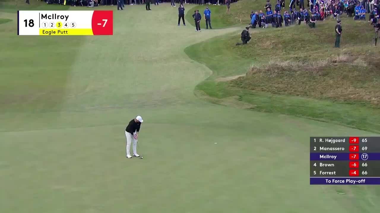 Hố đích,McIlroy cần eagle để nuôi hy vọng vô địch qua hố phụ với Hojgaard. Nhưng anh vuột điều kiện đó khi cú gạt cách ba mét hụt lỗ sít sao.