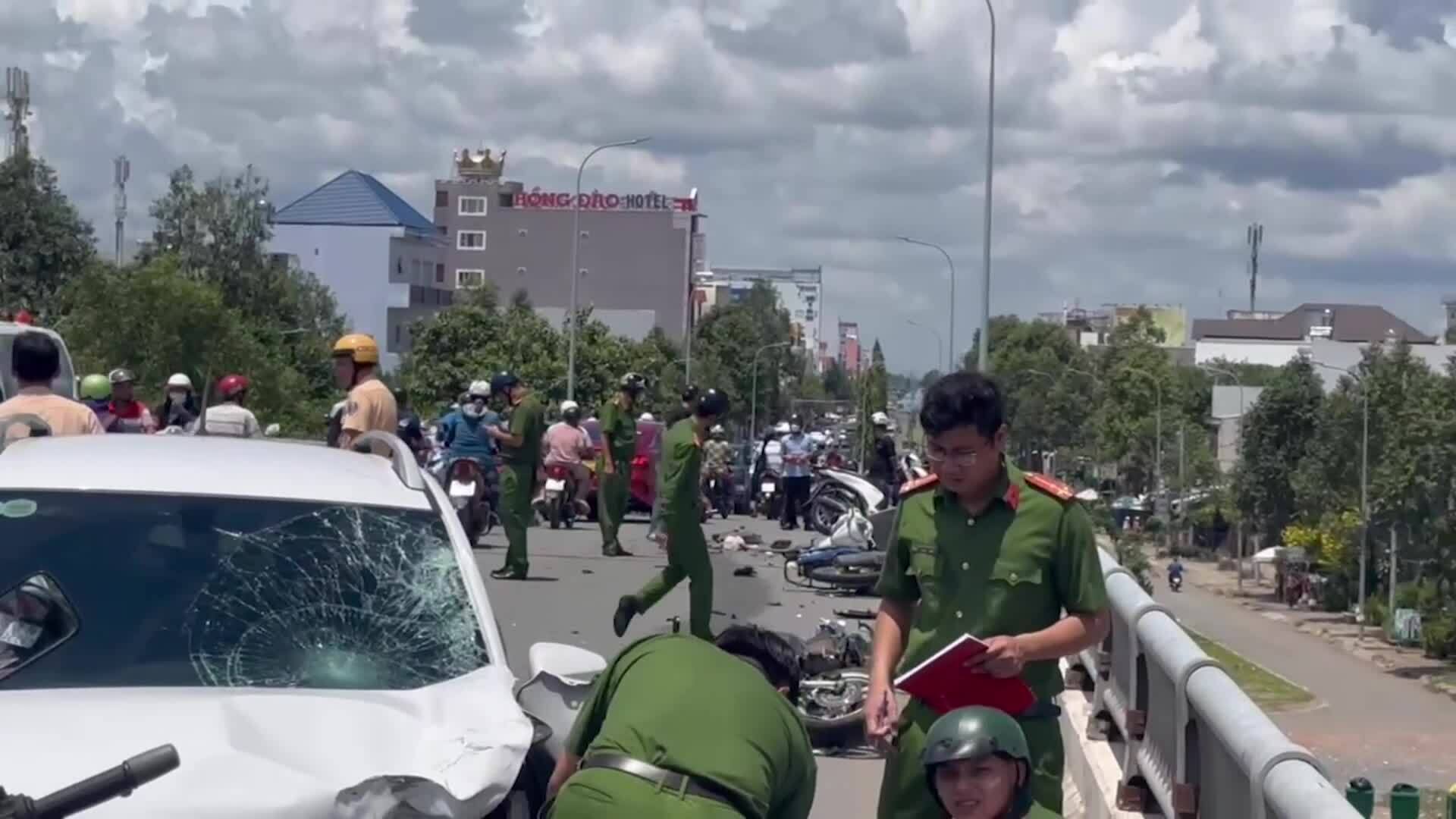 Ôtô tông loạt xe máy trên cầu ở Cần Thơ
