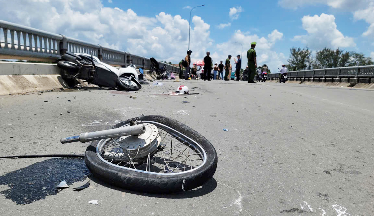 Hiện trường vụ tai nạn trên cầu Cồn Khương,trưa 15/8. Ảnh: An Bình