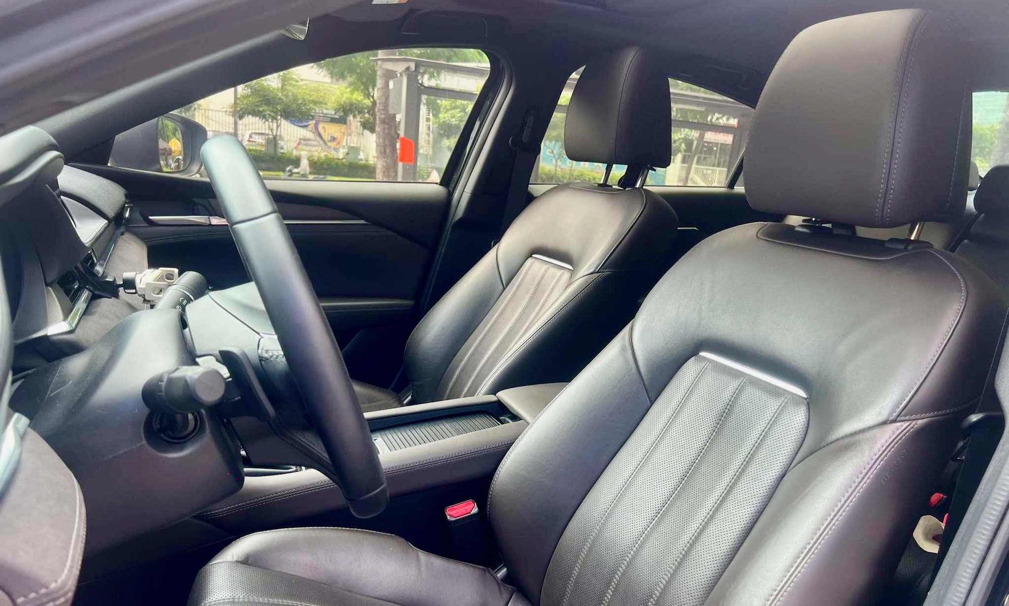 Mở toàn bộ cửa xe và phơi nắng thường xuyên khi mới mua xe sẽ giúp loại bỏ mùi nhanh chóng. Ảnh: Hồ Tân