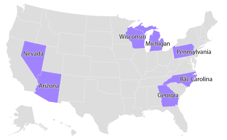 7 bang chiến trường trong bầu cử Mỹ năm 2024. Đồ họa: Axios