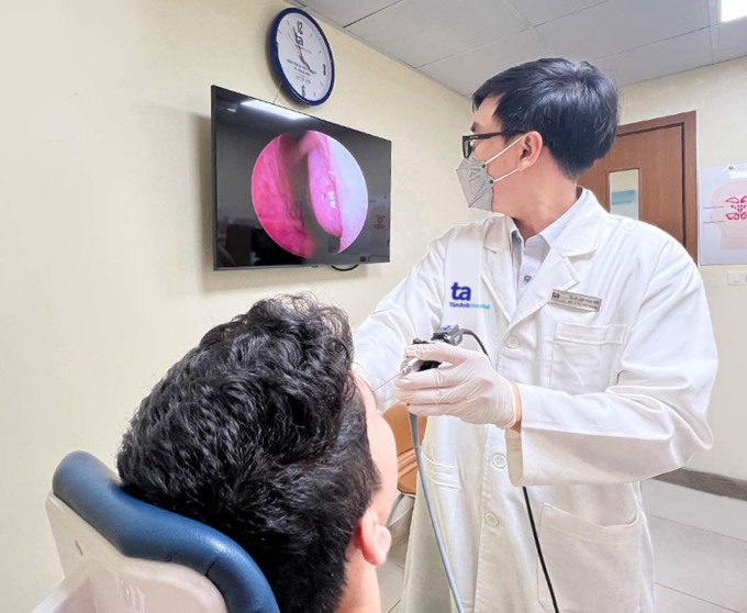 ThS.BS.CKI Diệp Phúc Anh nội soi mũi họng cho một người bệnh. Ảnh minh họa: Bệnh viện Đa khoa Tâm Anh