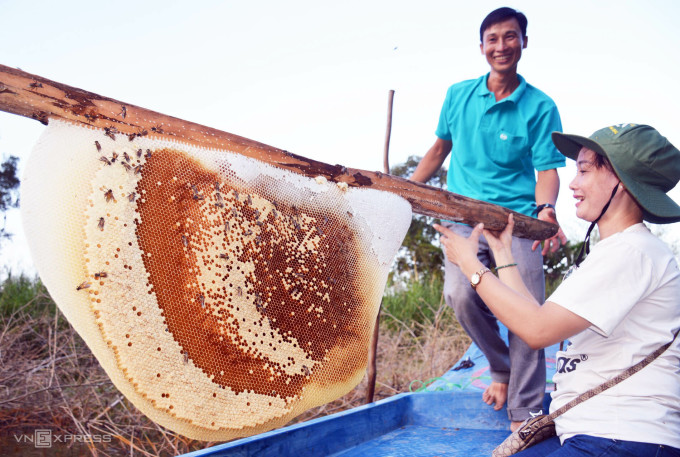 Vị ngọt,mùi thơm của mật ong bông tràm sẽ làm du khách nhớ mãi. Ảnh: Chúc Ly