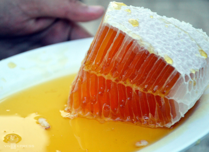 Tham gia trải nghiệm ăn ong hồi tháng 4,chị Lê Thị Thúy Diễm đến từ Hậu Giang,cho biết lần đầu chị tận mắt thấy và chạm vào tổ ong mật cỡ lớn. Khi đi lấy mật,chị được người hướng dẫn chia sẻ chi tiết về cách làm kèo,quá trình sinh trưởng của ong mật và cách phân biệt mật ong thật-giả.