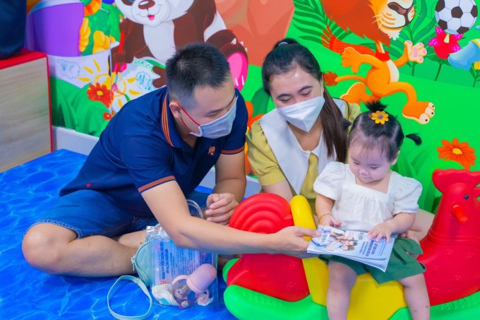Trẻ vui chơi cùng gia đình tại VNVC sau khi tiêm vaccine phòng bệnh. Ảnh: Mộc Thảo