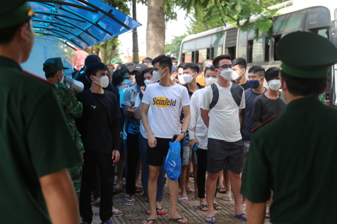 Nhóm người Việt tháo chạy được khỏi casino ở Campuchia được đưa về nước qua cửa khẩu Mộc Bài (Tây Ninh),tháng 9/2022. Ảnh: Đình Văn