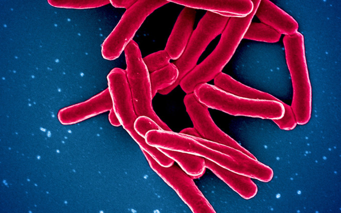 Ảnh hiển vi điện tử vi khuẩn Mycobacterium tuberculosis (màu đỏ) gây bệnh lao. Ảnh: NIAID