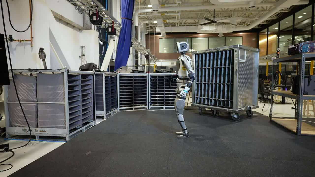 Trong video đăng ngày 31/10 trên YouTube,Atlas có thể lấy linh kiện ở tủ này để đặt vào tủ khác một cách linh hoạt,mô phỏng công việc phổ biến trong nhà máy. Khi gặp sai sót,cỗ máy lập tức tự điều chỉnh và tiếp tục làm việc. Robot cũng không có dây dẫn hay được con người điều khiển từ xa.