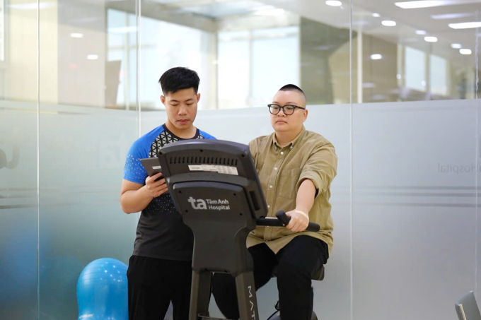 Chuyên viên tư vấn vận động kiểm tra thể lực cho anh Minh để đưa ra bài tập phù hợp: Ảnh: Bệnh viện Đa khoa Tâm Anh