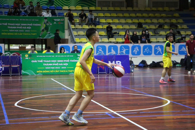 Hải Đăng dẫn bóng ở giải thể thao học sinh THPT Hà Nội,năm học 2022-2023. Ảnh: NVCC