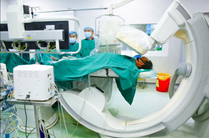 Bệnh nhân được đốt hạch giao cảm mạch thận bằng sóng cao tần để điều trị tăng huyết áp kháng trị. Ảnh: Bệnh viện cung cấp