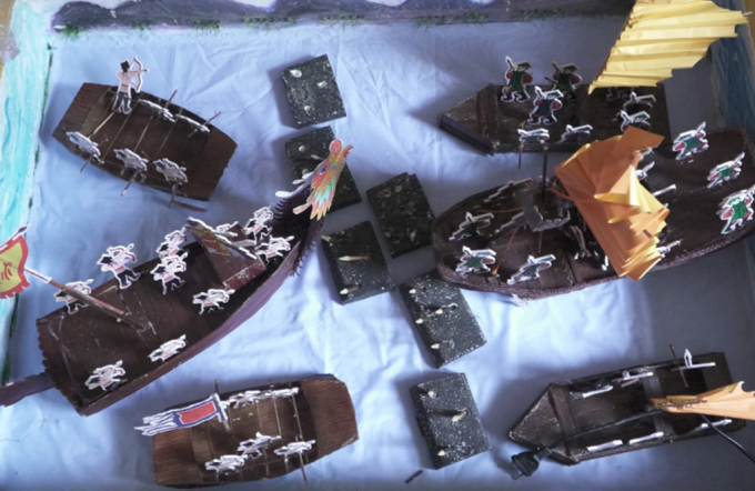 Học sinh dùng mo cau, bìa carton sáng tạo mô hình học lịch sử