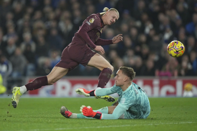 Haaland ghi bàn mở tỷ số trước Brighton. Ảnh: AP