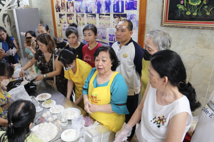 Hai tiếng sau,phòng khách 30 m2 trong ngôi nhà ở quận Bình Thạnh của người phụ nữ 74 tuổi đã có hơn 40 học viên,gần một nửa không đăng ký trước,chỉ đọc trên mạng xã hội về "lớp học làm bánh 0 đồng" nên đến xem thử.