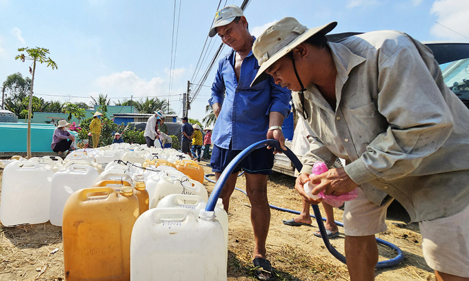 Mùa hạn mặn năm nay,Tiền Giang có gần 9.000 hộ dân ở các huyện phía Đông thiếu nước ngọt sinh hoạt. Tỉnh là địa phương đầu tiên ở miền Tây công bố tình huống khẩn cấp về thiên tai xâm nhập mặn,thiếu nước sinh hoạt ở huyện Tân Phú Đông. Địa phương sau đó mở hơn 100 vòi nước công cộng phục vụ nước ngọt miễn phí. Nhiều tổ chức,cá nhân cũng liên tục dùng xe bồn chở nước ngọt cung cấp cho người dân.