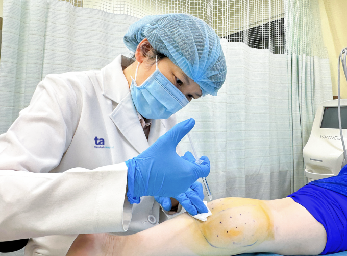 Bác sĩ tiêm botox thon gọn bắp chân cho chị Hương. Ảnh: Bệnh viện Đa khoa Tâm Anh