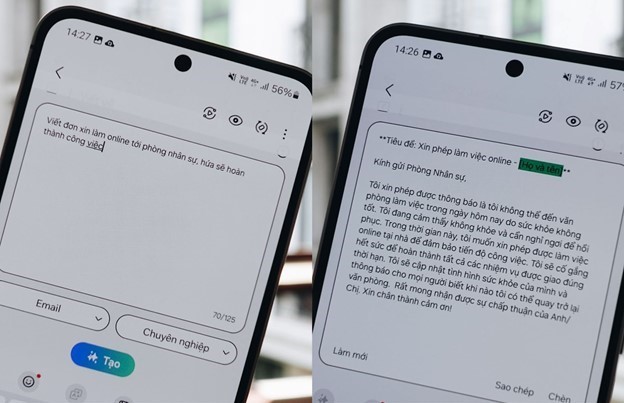 Galaxy AI có thể hiểu các từ lóng và đồng nghĩa mà người Việt thường dùng. Trong môi trường công việc,Galaxy AI nhận diện chính xác các từ mượn từ tiếng Anh,từ đó đưa ra các gợi ý giao tiếp phù hợp. Ngoài ra,ở các địa điểm công cộng đông người,Galaxy S24 FE vẫn có thể phân biệt âm thanh và hiểu rõ ý nghĩa câu từ,giúp giao tiếp của người dùng không bị gián đoạn bởi yếu tố ngoại cảnh.