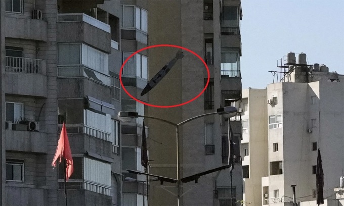 Quả bom của Israel (khoanh đỏ) lao vào tòa chung cư ở Beirut,Lebanon ngày 15/11. Ảnh: AP