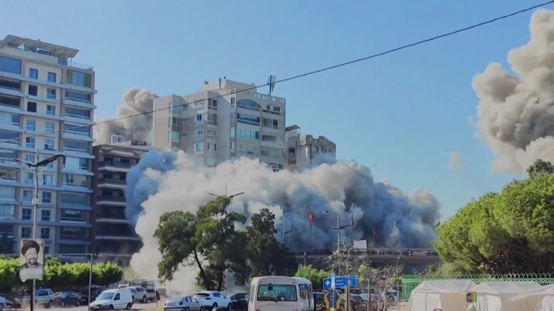 Khoảnh khắc tòa nhà ở Beirut sụp đổ vì trúng tên lửa Israel