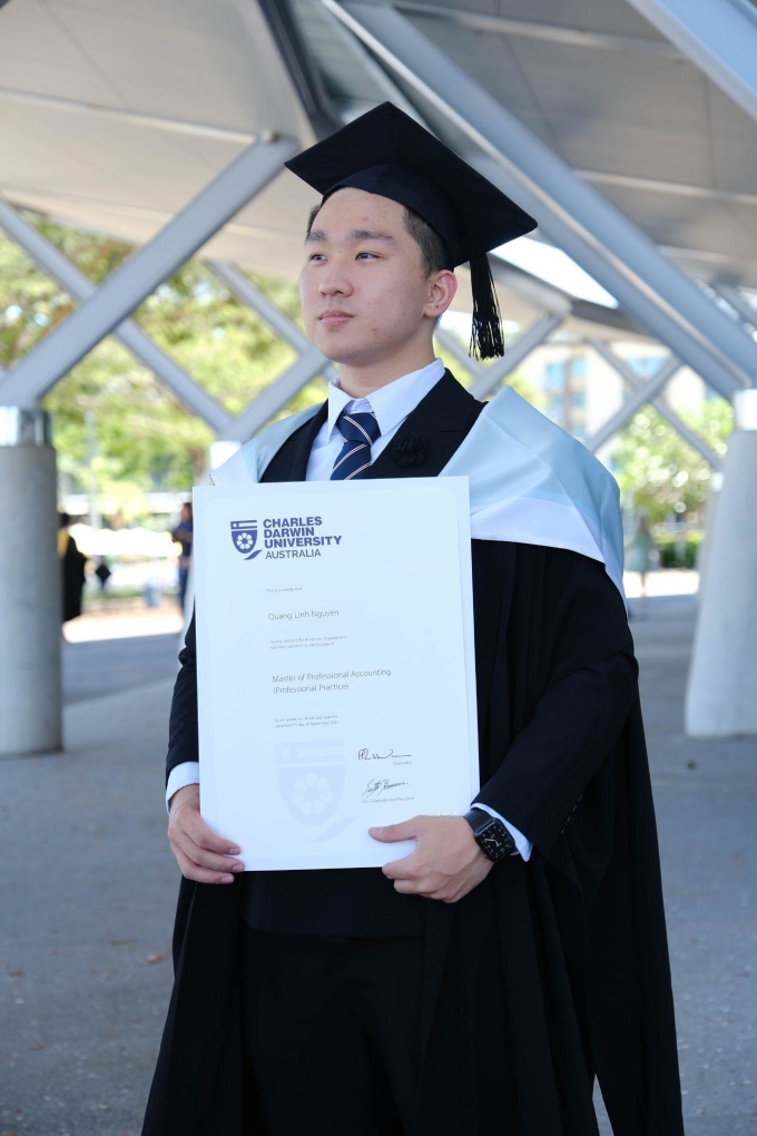 Quang Linh tốt nghiệp Thạc sĩ tại Đại học Charles Darwin. Ảnh: Nhân vật cung cấp