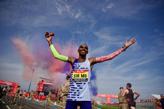 Farah cảm ơn người hâm mộ sau khi về đích ở Great North Run 2023 ngày 10/9/2023. Ảnh: Great Run