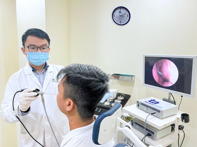 Bác sĩ Trung Nguyên nội soi mũi cho người bệnh. Ảnh minh họa: Bệnh viện Đa khoa Tâm Anh