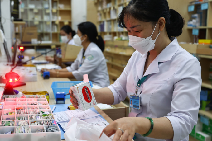 Nhân viên y tế tại nhà thuốc Bệnh viện Nhiệt đới TP HCM. Ảnh: Quỳnh Trần