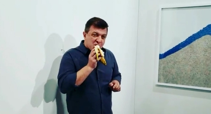 Tháng 5/2023,tại bảo tàng nghệ thuật Leeum,Seoul,một sinh viên đã gỡ quả chuối xuống và ăn,sau đó dán vỏ chuối vào vị trí cũ. Khi nhân viên bảo tàng yêu cầu giải thích,nam sinh viên trả lời là cậu đã "bỏ bữa sáng và quá đói",thêm rằng "phá hỏng tác phẩm nghệ thuật hiện đại cũng có thể coi là một loại hình nghệ thuật".