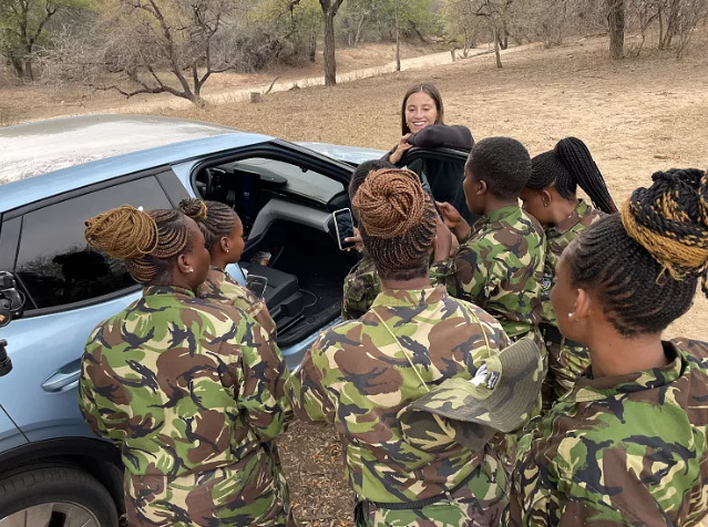 Lexi chụp ảnh với người dân địa phương khi đến Nam Phi. Ảnh: Euro News