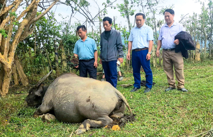 "Đàn trâu của tôi gồm 9 con,mắc bệnh giống nhau,hiện tại 5 con đã chết,ước tính thiệt hại kinh tế 300 triệu đồng",ông Phia nói.