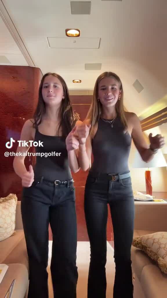 Kai Trump (phải) cùng bạn nhảy điệu Trump trên chiếc Boeing 757. Video: TikTok/KaiTrump