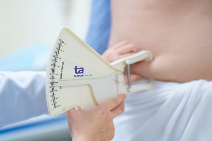 Người bệnh được đo lượng mỡ thừa ở bụng. Ảnh: Bệnh viện Đa khoa Tâm Anh