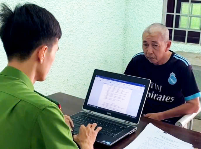 Nghi can Hứa Thanh Nghĩa tại cơ quan điều tra. Ảnh: Nam An