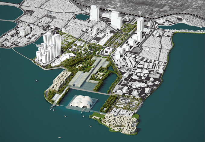 Phối cảnh tổng thể đồ án quy hoạch chi tiết khu vực trục không gian trung tâm bán đảo Quảng An. Nguồn: UBND quận Tây Hồ cung cấp