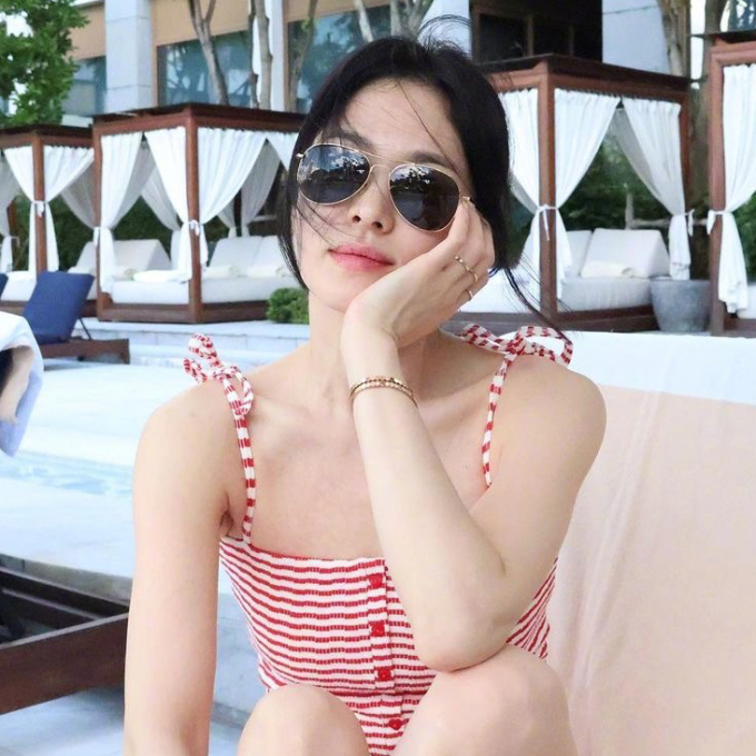 Hye Kyo hiếm hoi đăng hình diện áo tắm. Ảnh: Instagram/Song Hye Kyo