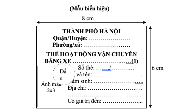 Mẫu thẻ hoạt động vận chuyển. Nguồn: UBND TP Hà Nội