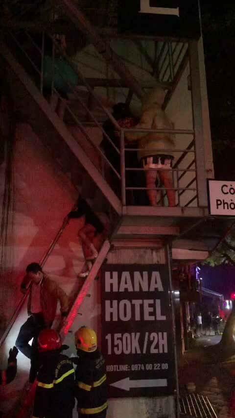 Lực lượng chức năng đã dùng vòi rồng phun nước chữa cháy,chống cháy lan,đồng thời trấn an tinh thần những người mắc kẹt. Sau khoảng 5 phút,họ đã tiếp cận được người bên trong khách sạn và hướng dẫn thoát nạn qua cầu thang sắt bên ngoài.