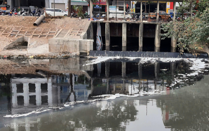 Cống nước thải chảy ra sông Tô Lịch đoạn cầu vượt Láng Hạ,ảnh chụp ngày 28/11. Ảnh: Võ Hải