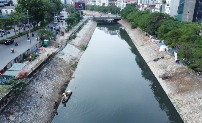 Nước sông Tô Lịch ô nhiễm,hai bên bờ nhếch nhác mất vệ sinh. Ảnh: Hoàng Phong