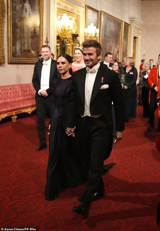 Theo Daily Mail,vợ chồng Beckham gây chú ý khi có mặt trong danh sách 170 khách mời cùng Vua Charles III,Hoàng hậu Camilla và Thái tử William đón quốc vương Tamim bin Hamad Al Thani và vợ - Sheikha Jawaher bint Hamad bin Suhaim Al Thani - dịp thăm Vương quốc Anh. Quốc yến do Vua Charles tổ chức tại phòng khiêu vũ của cung điện Buckingham.